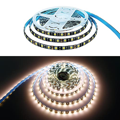 YUNBO 5M Striscia LED Bianco Caldo 3000-3500K, 12V Nero PCB SMD 5050 300LED Tagliabile IP65 Impermeabile Luci a LED