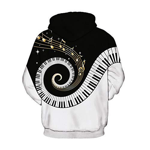 Yunge Felpa con Cappuccio da Uomo Unisex da Donna con Teschio 3D Felpa con Cappuccio Pullover con Lupo Lion Tiger Anime Felpa con Cappuccio Hip-Hop, Note Musicali, 2XL / 3XL
