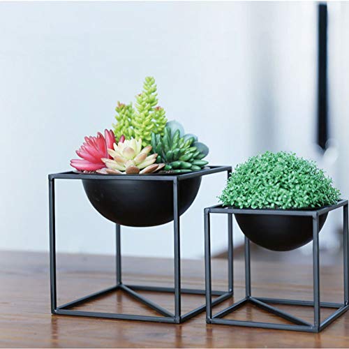 Yunhigh geometrica nero pentola in metallo con struttura in ferro cornice basamento novità centrotavola vaso giardino decorativo vaso fioriera ufficio casa arredamento - nero