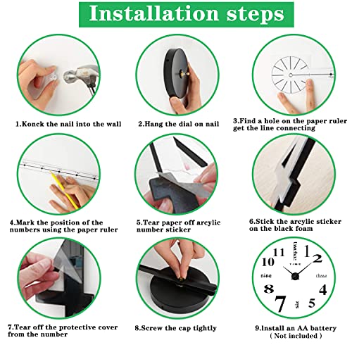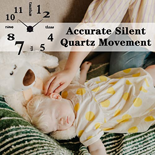 [Design Moderno] - Orologio da parete adesivo aggiunge gli elementi e le funzioni dell'orologio all'adesivo del muro, che è un buon modo per integrare l'orologio nello stile generale di decorazione. Large Size for Wall Decoration, la superficie dello specchio acrilico consente alla tua camera di ottenere un'atmosfera elegante e moderna.