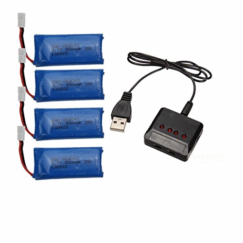 YUNIQUE ITALIA Caricatore 1 TO 4 con 4 Batterie da 500mAh LIPO Ricaricabile per HUBSAN X4 H107L H107C H107D H107 V252 JXD 385