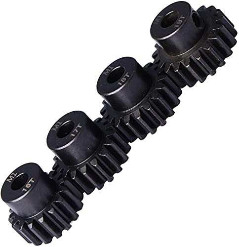 YUNIQUE ITALIA 4 Pezzi Pignoni 16T 17T 18T 19T M1 5mm Shaft Gear Module Pinion per Motore Brushless 1:8 1/8 RC Monster/Buggy/Camion, Colore Nero