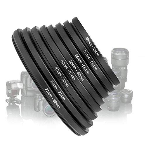 Yunir Anello Adattatore Filtro Obiettivo, 8 Pezzi Anelli universali in Lega di Alluminio Set 49-52-55-58-62-67-72-77-82mm