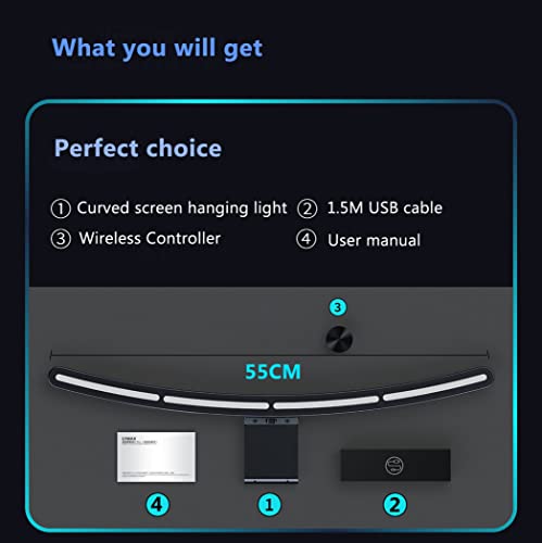 [Applicazione ampia e alimentata tramite USB] Adotta la curvatura R1000 e il design del corpo della lampada allungato di 55 cm e per lo schermo curvo ≥R1000. Con il cavo USB da 1,5 m incluso, puoi utilizzare la lampada monitor sempre e ovunque. Che si tratti di computer, adattatore (consigliato 5V 2A) o power bank, qualsiasi porta USB può alimentare la lampada di lettura elettronica.