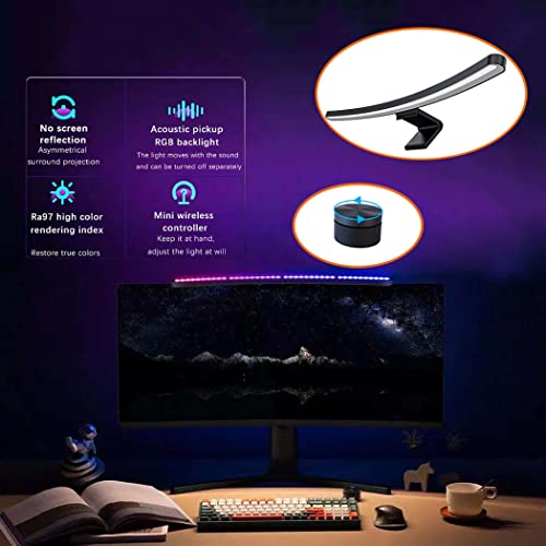 HT YUNJLI Schermo Curvo Lampada per Monitor A LED Occhi con Regolazione Continua, Lampada per Schermo da 55 Cm, Retroilluminazione RGB, Telecomando Senza Fili, Salvaspazio, CRI≥97Ra
