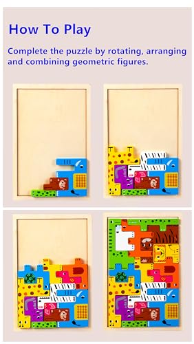 YUNJYI'S 2 in 1 Puzzle di legno a tema animali e veicoli., Tetris,Tangram Bambini Set,Giochi Montessori 3 4 5 6 Anni,Giocattoli di Formazione del Cervello,Regali Educativi per Bambini