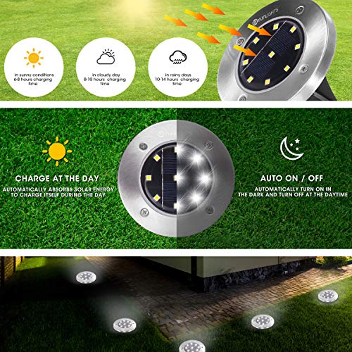 Le luci perfette per il vostro vialetto anteriore, in viaggio, in giardino, ecc. Basta posizionarle ovunque sia necessaria la luce notturna. Nessun cablaggio o sostituzione di batterie. Utilizza l'energia solare gratuita.