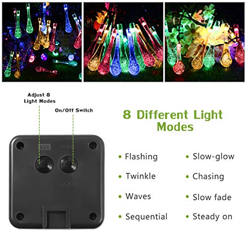 YUNLIGHTS - Striscia di luci solari con 30 LED a forma di goccia, impermeabile, per interni ed esterni, per patio, giardino, prato, feste, casa, decorazioni per le vacanze, PVC, Luci a goccia, multicolore., 04-Water Drop, LED