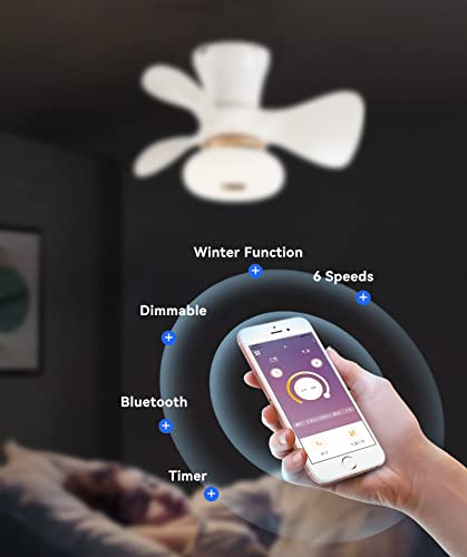 【Telecomando e APP】 Questo mini lampadario con ventilatore non solo ha prestazioni e design eccellenti, ma supporta anche molteplici metodi di controllo intelligenti. È possibile controllare tutte le operazioni del ventilatore da soffitto tramite il telecomando o l'app (FanLamp Pro), tra cui la velocità del vento regolabile su 6 livelli e la modalità di sospensione del vento a tempo (1/2/4/8 ore).