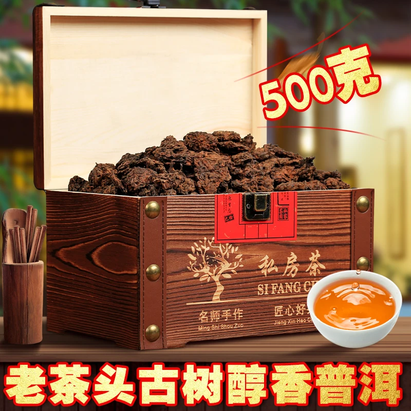 Yunnan Pu'er Cooked Tea Antique Tree Court Tea in Bulk Gift Set Golden Bud Chen Xiang Old Class Zhang Old Tea Head 500G