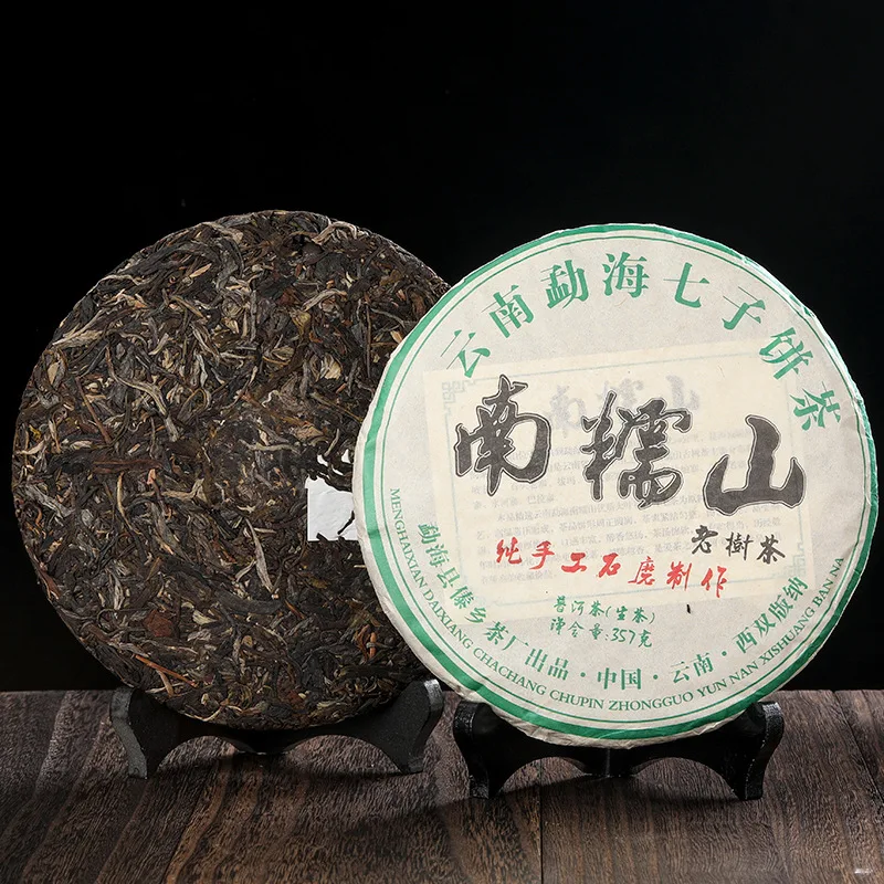 Yunnan Pu'er Tea Cooked Tea Xishuangbanna 357g Qizi Tea Cake Wholesale Nannuoshan Old Tree Tea Raw Tea Yunnan Folded Appearance"