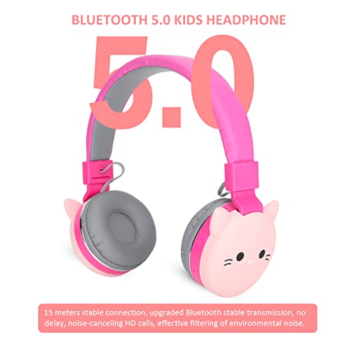 Yunseity Cuffie per Bambini con Microfono, Cuffie Pieghevoli a Forma di Simpatici Animali, Cuffie per Bambini Bluetooth Senza Fili/cablate, Supporto TF, Radio FM, Jack da 3,5 Mm(Gattino)
