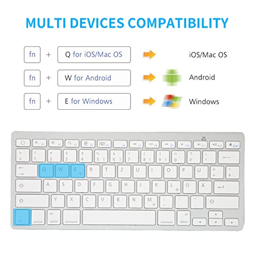 Yunseity Tastiera Bluetooth Wireless Portatile, Mini Tastiera Compatta a 78 Tasti, per IPad, Mac, Android, Arabo/Spagnolo/Francese/Coreano/Russo/Tailandese Tastiera(Tedesco)