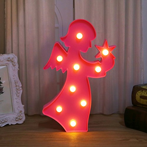 Yunso Yunso 3D Marquee - Lampada a forma di angelo con 9 LED a batteria, luce bianca calda, a forma di pinguino
