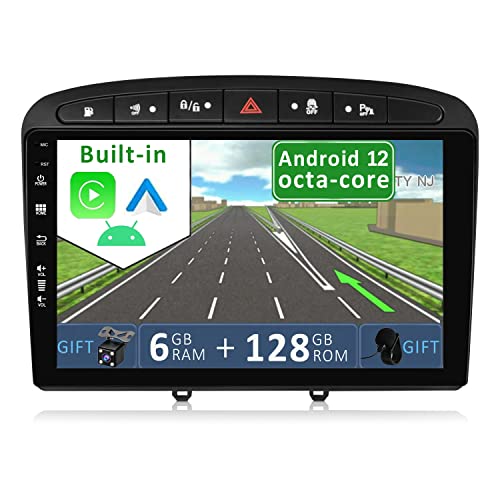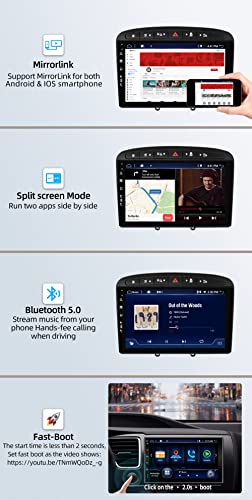 YUNTX Android 10 [6GB+128GB] Autoradio per Peugeot 308 (2007-2013) - [Incorporato Carplay/Android Auto/DSP] - 9 pollici - Free Camera&MIC-2 Din/GPS/Bluetooth 5.0/WiFi/USB/Comandi al volante/4G/DAB