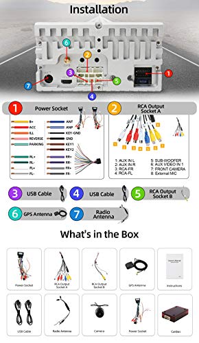 【CONTENU DE LA BOÎTE】 2 x Presa di corrente / 1 x Presa di uscita RCA A / 1 x Presa di uscita RCA B / 1 x antenna GPS / 2 x cavo USB / 1 x antenna radio / 1 x Canbus / 1 x videocamera posteriore / 1 x manuale utente