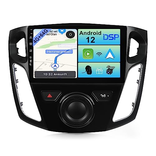 YUNTX [4GB+64GB] Android 12 Autoradio per Ford Focus(2012-2015)-[Incorporato Carplay/Android Auto/DSP/GPS]-IPS 2.5D 9" Touch Screen-CAM+MIC-DAB/Mirror Link/Bluetooth 5.0/WiFi/USB/4G