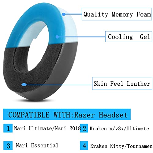 YunYiYi Auricolari in gel di raffreddamento compatibili con Razer Nari Ultimate, Nari Essential, Kraken Kitty, Kraken X, V3X Tournament Edition (nero)
