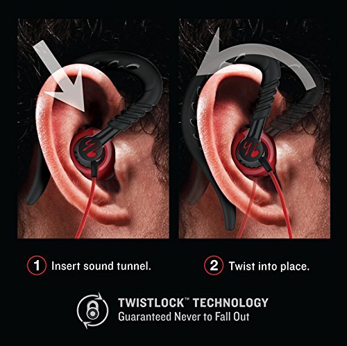 Yurbuds Focus 300 Cuffie Sportive Resistenti al Sudore, Gancio Dietro l'Orecchio, Controllo Traccia/Microfono, Tecnologia Twistlock, Magneti Cavo Quik Clik, Compatibili con Smartphone, Tablet e Dispositivi MP3, Nero