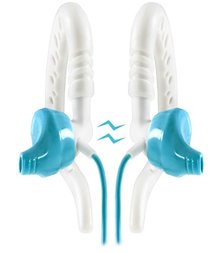 Yurbuds Focus 200 Cuffie Sportive Resistenti al Sudore, Gancio Dietro l'Orecchio, Tecnologia Twistlock a Chiusura Sicura, Magneti Cavo Quik Clik, Compatibili con Smartphone, Tablet e Dispositivi MP3, Azzurro/Bianco