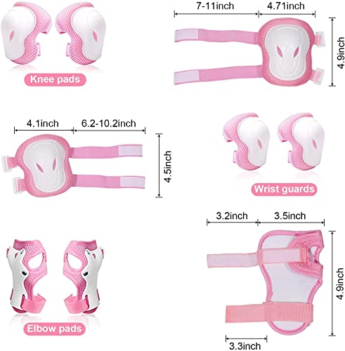 YushengTai Set di Ginocchiere per Bambini, Set di 2X gomitiere, 2X polsiere e 2X Ginocchiere protettive per Bambini per Pattini, Hoverboard, Scooter(Rosa)