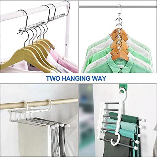 YUSHI Porta Pantaloni and Grucce Magici, Appendiabiti salvaspazio kit, 4 pezzi Appendini magici in metallo e 2 pezzi Grucce Pantaloni