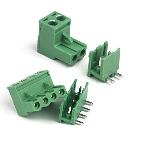 YUSHIBO, 30 coppie di connettori da 5,08 mm a 2 pin/4 pin PCB di montaggio a vite 250 V 10 a Terminal Block per Arduino (2 Pin-15 paia, 4 Pin-15 paia/verde)