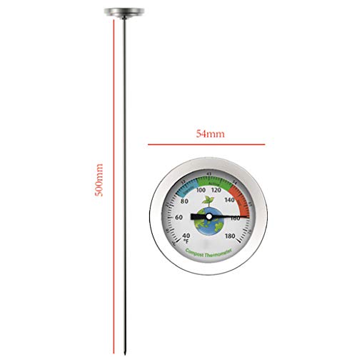 Yushu - Termometro da giardino in acciaio inox, 50 cm, per compostaggio e termoretraibile, strumenti di misurazione della temperatura