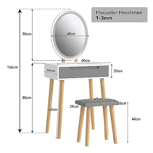 YU YUSING Toeletta, Tavolo da Trucco con Luce LED Regolabile e Specchio Ovale, Toeletta da Trucco Moderna con Sgabello, 2 Cassetti, 4 Scomparti