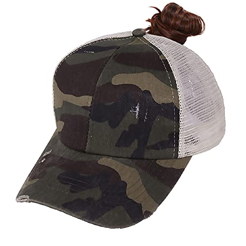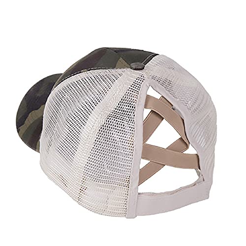 Yuson Girl Cappello in Cotone Unisex Ragazzi Ragazze Berretto da Baseball a Coda di Cavallo da Donna Cappello Piatto Snapback Hip Hop Cappello a Maglia Incrociata Trucker cap(Camuffare)