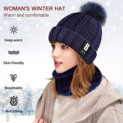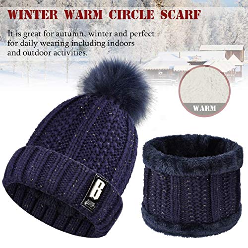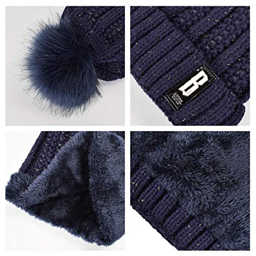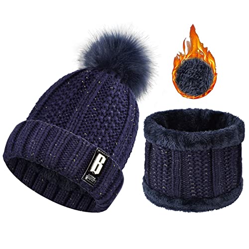 Yuson Girl Cappello Donna Invernale Berretti e Sciarpe Donna con Sciarpa Donna Berretti in Maglia(Marina)