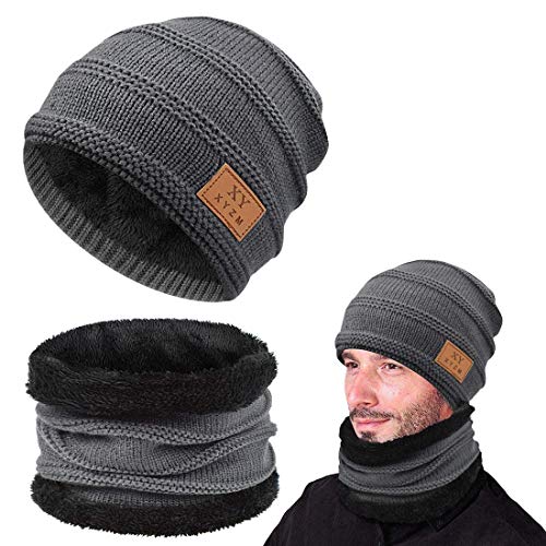 Yuson Girl Cappello Uomo Invernale Berretti e Sciarpe Uomo con Sciarpa Uomo Berretti in Maglia(Grigio2)