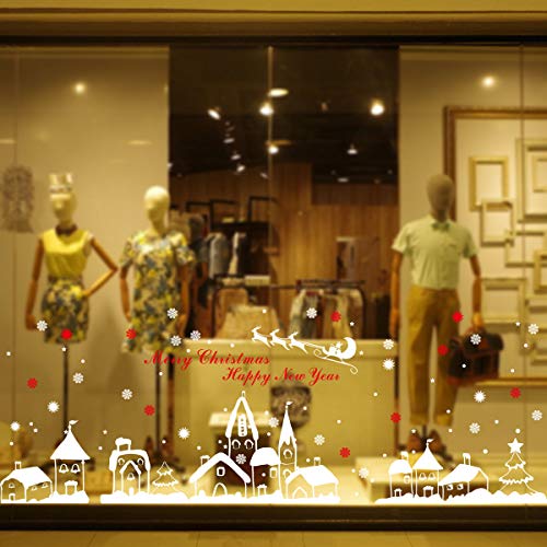 Yuson Girl- Adesivo da parete natalizio, motivo: fiocchi di neve, campane e casette innevate - decorazione per finestre e carta da parati, rimovibile
