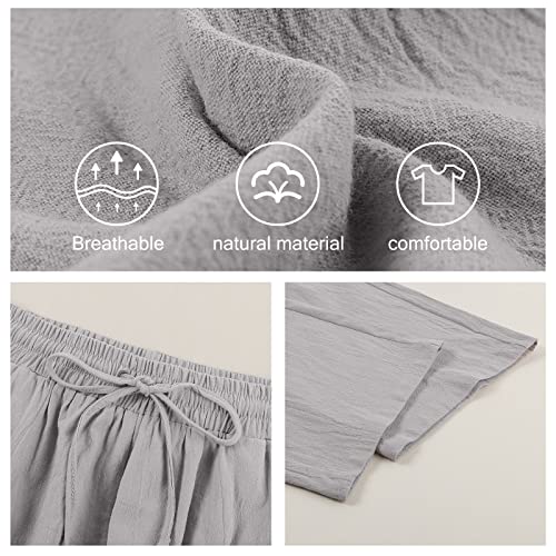 Yuson Girl Pantaloni Donna Tinta Unita Casual Pantaloni Elastico Pantaloni Leggeri Estivi Traight con Coulisse Pants Pantaloni in Cotone e Lino con Tasche(Grigio, L)