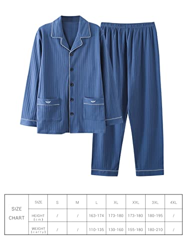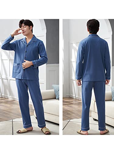 YUTCRTIP Pigiama Uomo Inverno in Cotone, Pigiami Due Pezzi da Uomo, Maniche Lunghe Pigiama Uomo Completino Casual per Casa (Color: Blue, Size: L)