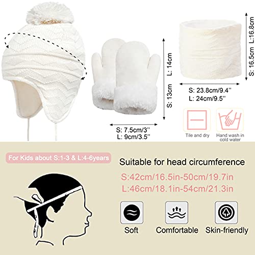 Yutdeng Bambino Cappello Sciarpe Guanti Set Ragazzo Tenere Caldo Invernale Beanie Cappelli Berretto A Maglia con Pompom Bambini Bambine, bianco, Taglia unica