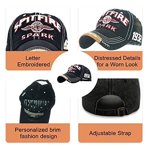 Yutdeng Berretto da baseball Hip Pop per gli uomini Ricamo Regolabile in cotone Classic Berretto Vintage Estate Cappelli Berretto Sport da Sole Baseball Cap Uomo Donne, nero, Taglia unica