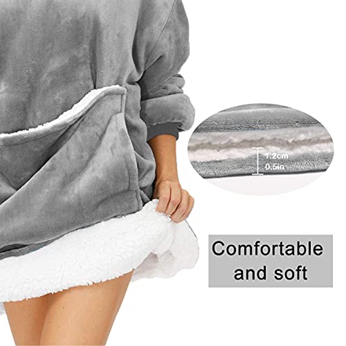 Yutdeng Felpe con Cappuccio Donna Uomo Maniche Lunghe Pullover Hoodie Casual Autunno e Inverno Sweatshirt Taglie Forti Super Morbido Oversize Gigante Coperta Accappatoio in Pile Pigiama Grigio