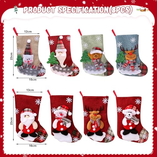 YUTUY Calza di Natale Set di 8 Pezzi,Calze Natalizie da Appendere,Calza di Natale Camino,Candy Sacchetti Regalo per Albero di Natale Festa di Natale Decorazioni,Regali per Bambini Famiglia