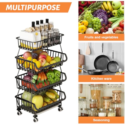 YUTUY Carrello Portafrutta,Cestino per Frutta a 4 strati Cestino Cesti Impilabili su Ruote,cesto per frutta e verdura per Cucina, Dispensa, Ripostiglio, Bagno,verdura, articoli da toeletta