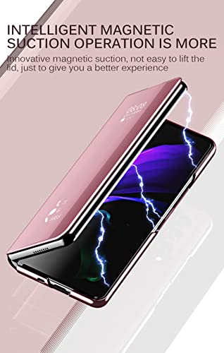 Yutwo Cover per Samsung Galaxy Z Fold 3 5G, Clear View Specchio Standing Cover, Slim Mirror Flip Custodia Wallet Portafoglio Elegante Smart Flip Ultra Slim Case per Samsung Z Flip 3 5G - Rosa