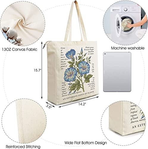 Yuuki Borsa di Tela Ecologico, Canvas Tote Bag, Borsa Tela Riutilizzabile, Borsa Shopper Donna, Borsa di Stoffa Aesthetic con Cerniera e la Tasca Interna, Perfetto per Uso Viaggi, Shopping etc