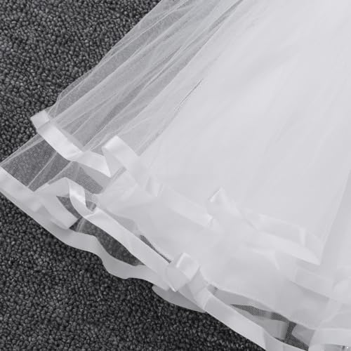 Abito a 4 strati, 2 strati di rete a più livelli con orlo a nastro, 1 strato di raso e 1 fodera con rete per una maggiore pienezza. Bloomers in cotone abbinati con elastico in vita e aperture sulle gambe