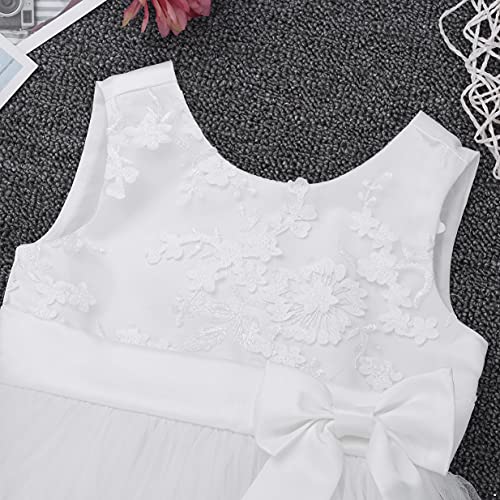 Il corpetto superiore senza maniche ricamato è decorato con fiori 3D Design a vita alta con fiocco cucito. Parte posteriore con bottoni per vestirsi facilmente, fascia allacciata