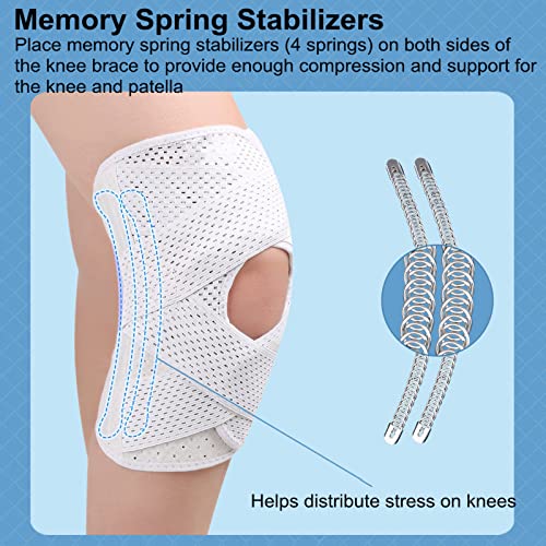 【Corde a Molla a Doppio Lato】: posiziona gli stabilizzatori a molla a memoria (4 molle) su entrambi i lati della ginocchiera, forte supporto e sentiti libero di piegare il ginocchio senza restrizioni di movimento. È la scelta migliore per la protezione sportiva e il recupero del dolore.