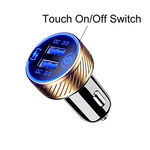 YUYAN Caricatore da auto USB 36 W/3 A ricarica rapida con LED blu e interruttore touch per IPhone 12/11 Pro/Max / 8, Galaxy