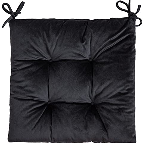 YuYiY, Set di cuscini in velluto per sedie da pranzo, 35 x 35 cm, confezione da 2/4 cuscini per sedie con legacci, durevoli, imbottiti, per ufficio, cucina, soggiorno, balcone (nero, 4)