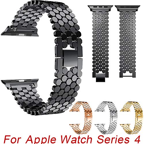 Yuyoug replacement stainless steel Watch Band loop strap regolabile fascia di polso braccialetto per Apple Watch Series 4 40 mm/44 MM, Nero, 40 mm