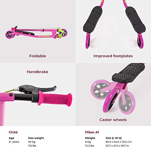 Yvolution Y Fliker Air A1 Monopattino oscillante a farfalla | Monopattino a tre ruote per maschi e femmine, età: 5-8 anni (rosa)