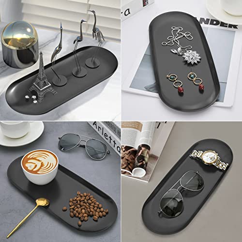 Yvttve Piccolo Vassoio Decorativo Nero 30 x 12 cm, Piatto da Portata in Acciaio Inossidabile, Vassoio Portaoggetti in Metallo per Profumi Gioielli Candele Dolci (30 × 12 CM, Nero)